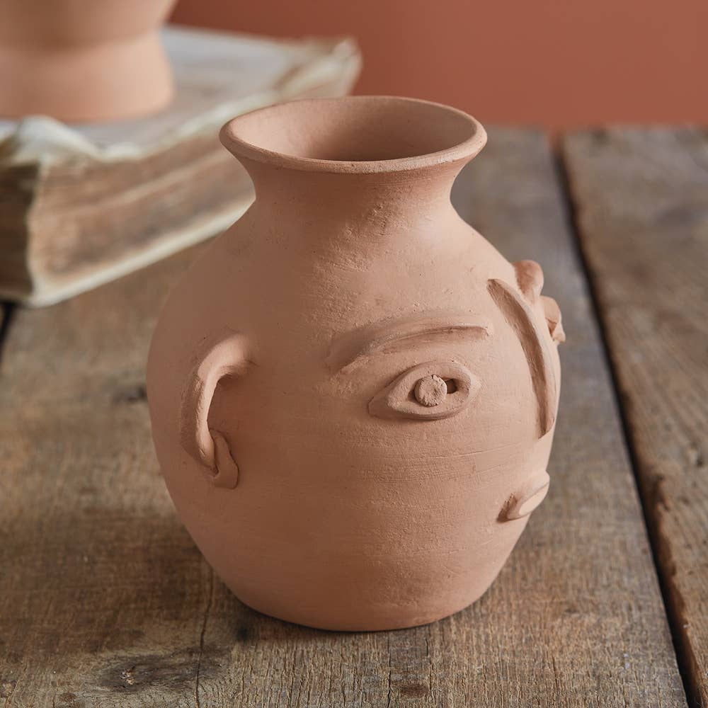 This unique and captivating jug is not just a vessel for your florals, but a masterpiece that adds a touch of innovative elegance to any space. Handcrafted by skilled artisans, its intricate yet abstract facial features evoke a sense of creativity, making it a conversation piece. This terra cotta jug is handmade. Differences in shade and shape are to be expected.
