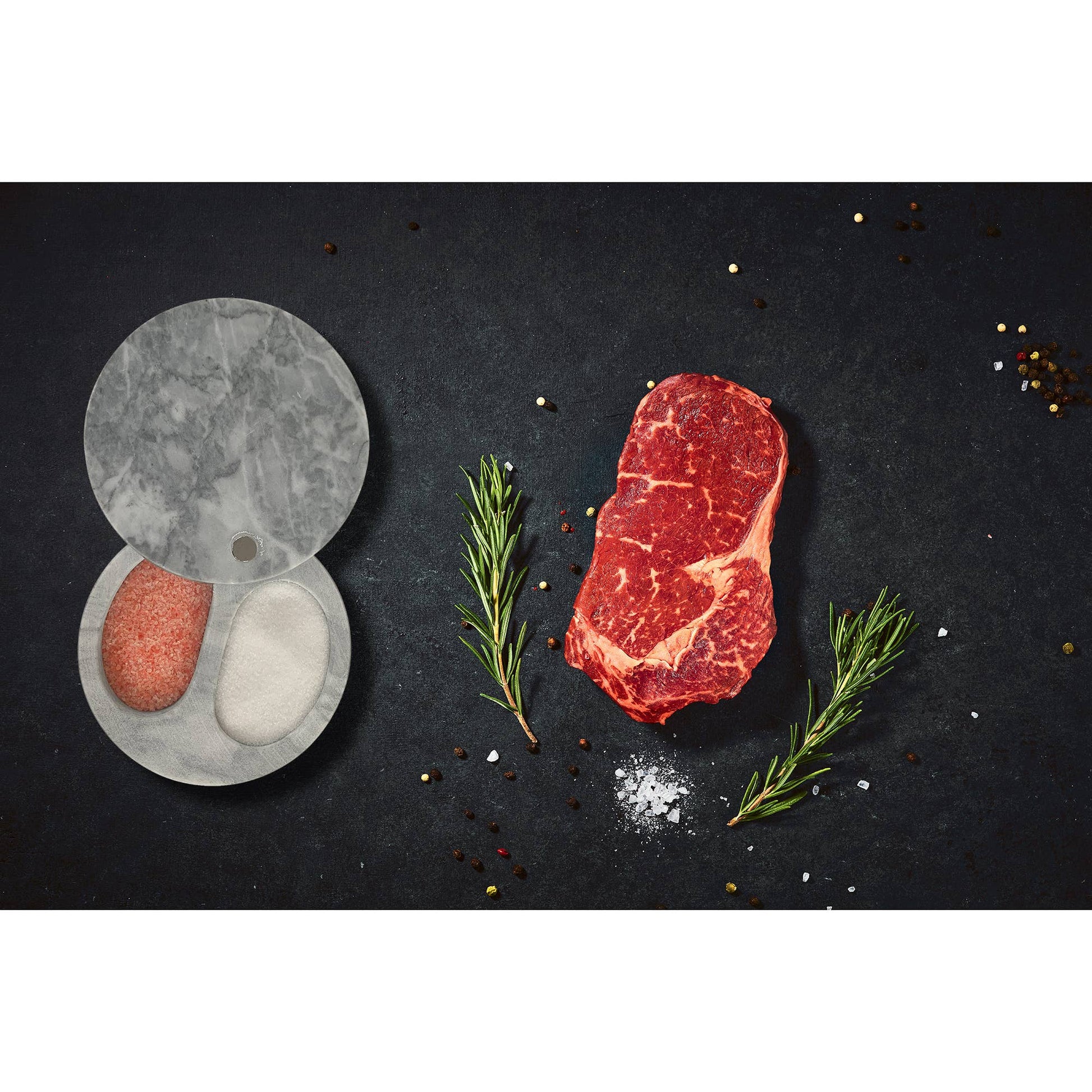 • DOUBLE CELLAR: Store two seasonings of your choice! The rotating marble lid allows you to access both spices or just one at a time to avoid accidentally mixing or spilling the seasoning that isn’t being used