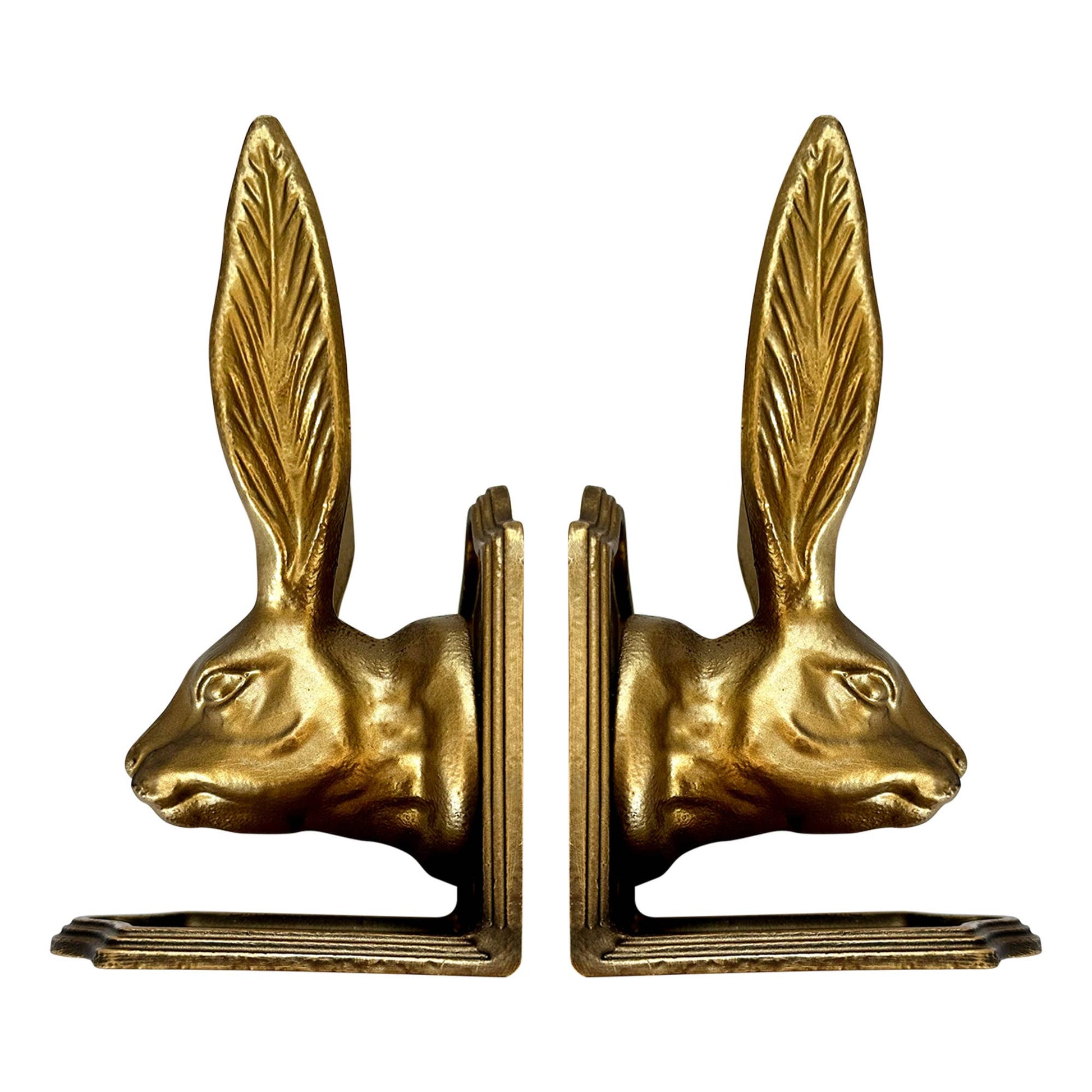 BEAUTIFUL RABBIT HEAD DESIGN: This bookend set comes designed as a bronze rabbit that adds to the look and feel of your bookshelves. Bring your shelves to life while keeping your books securely in place! -MADE OF 100% IRON: The decorative bookends are crafted from 100% iron which gives them a great weight, feel, and durability. -HEAVY DUTY BOOKENDS: Weighing about 3.7 pounds each these heavy bookends are ideal for holding cookbooks, textbooks, novels, children’s books, and everything in between. The wide platforms at the base of each book stopper keep them stable for extra security. -DECORATIVE AND FUNCTIONAL: Whether it is for your office, library, kitchen, bedroom, or living room these bookends will fit right in and get the job done! -MEASUREMENTS AND CARE: The Rabbit Bookend Set measures 4.7” x 4” x 8.6”. The set weighs 7.4 pounds. Hand wash only if cleaning is needed.Package Type: Brown Boxed