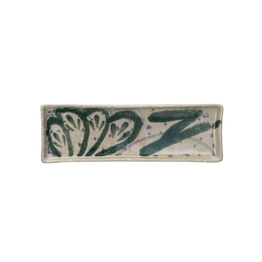 Hand-Painted Stoneware Platter w/ Abstract Design - Creative Coop