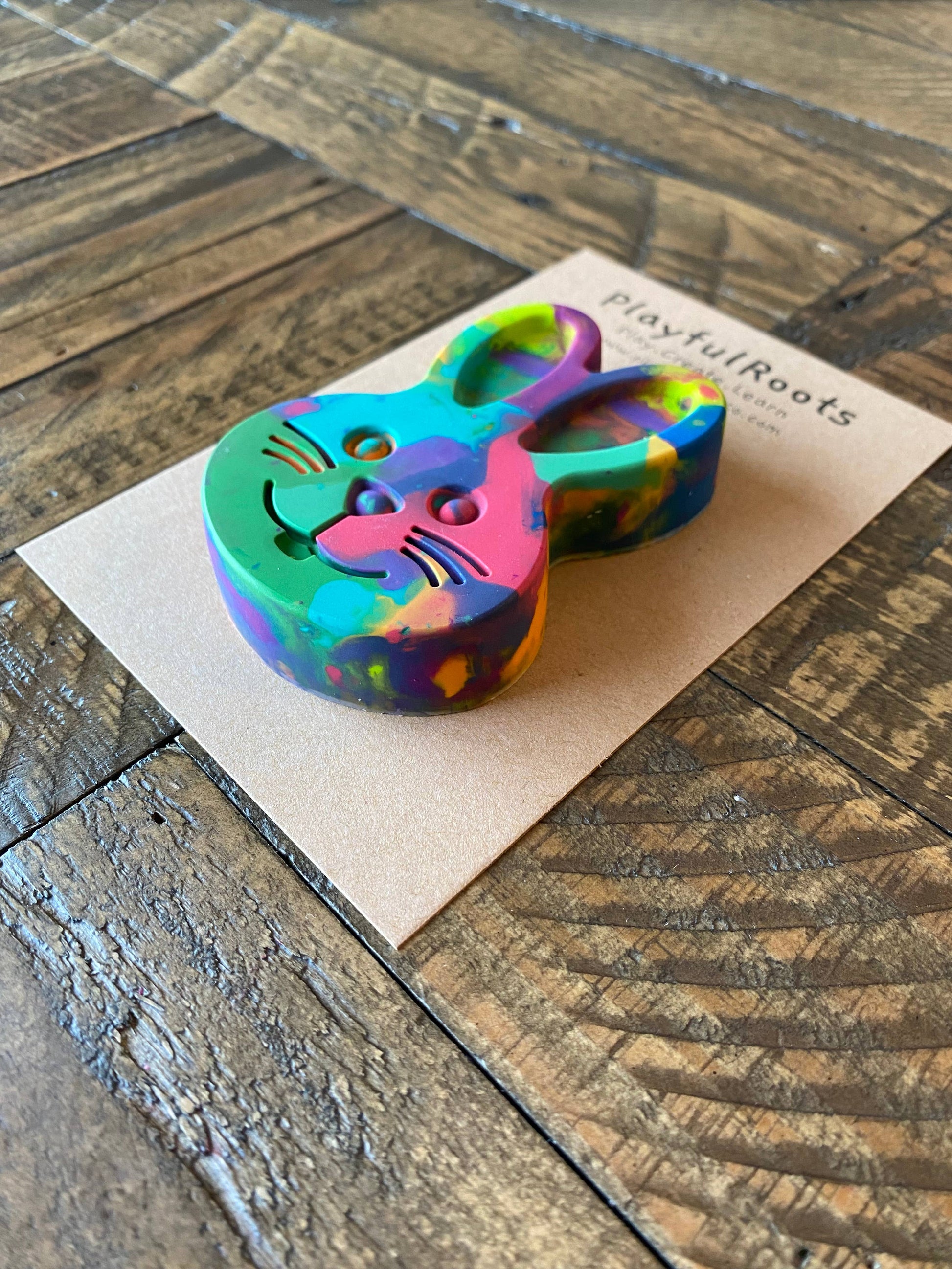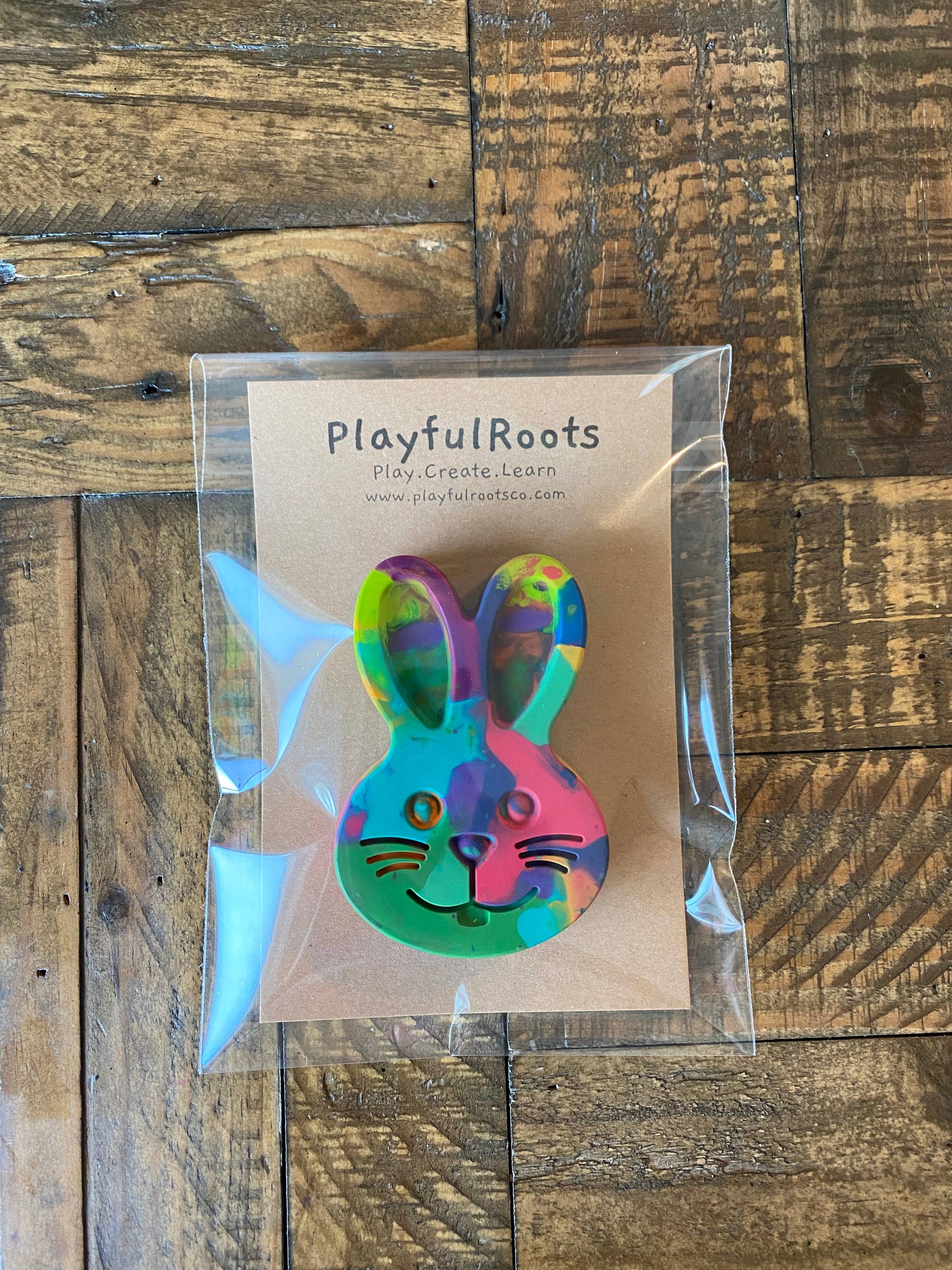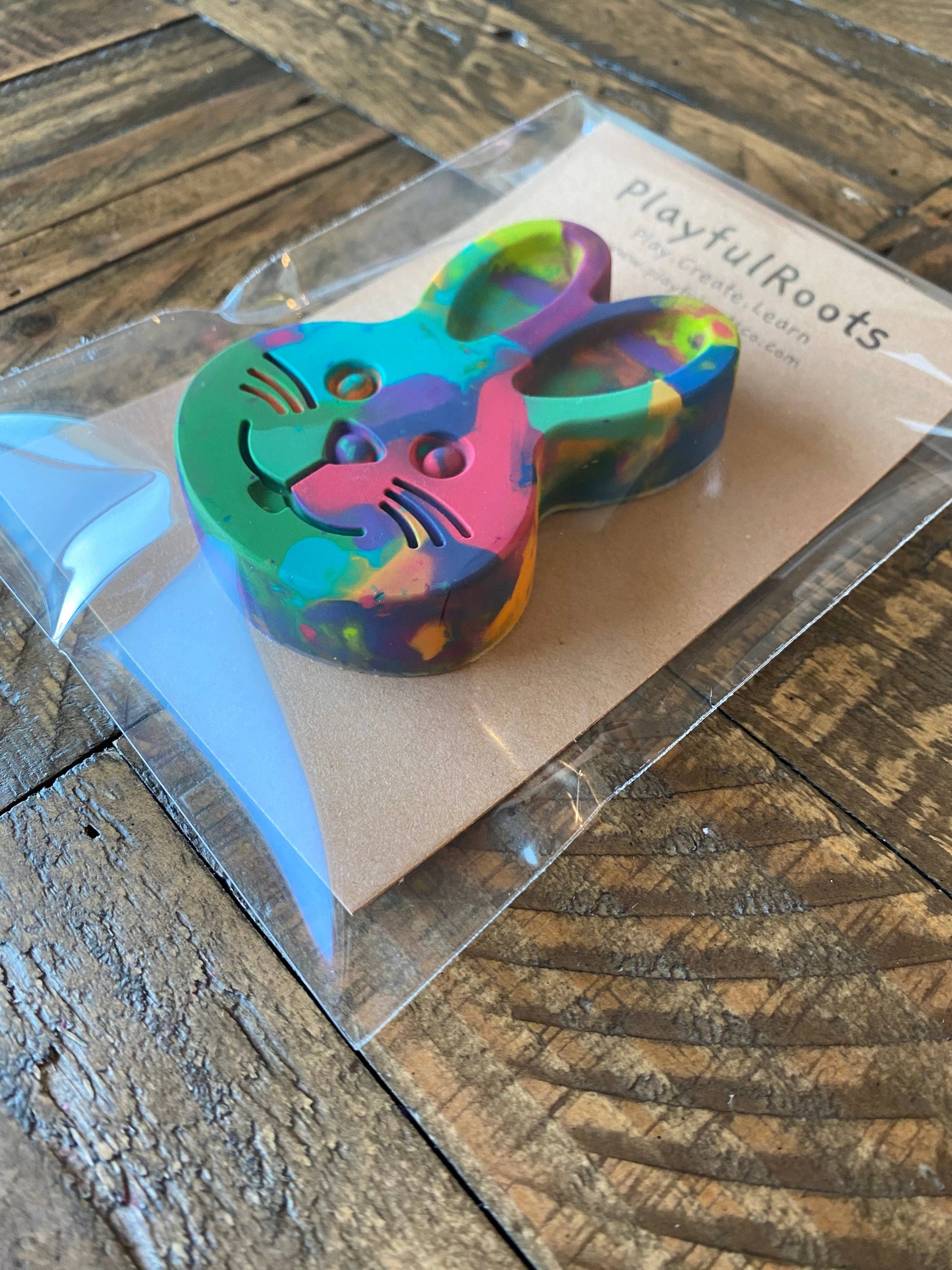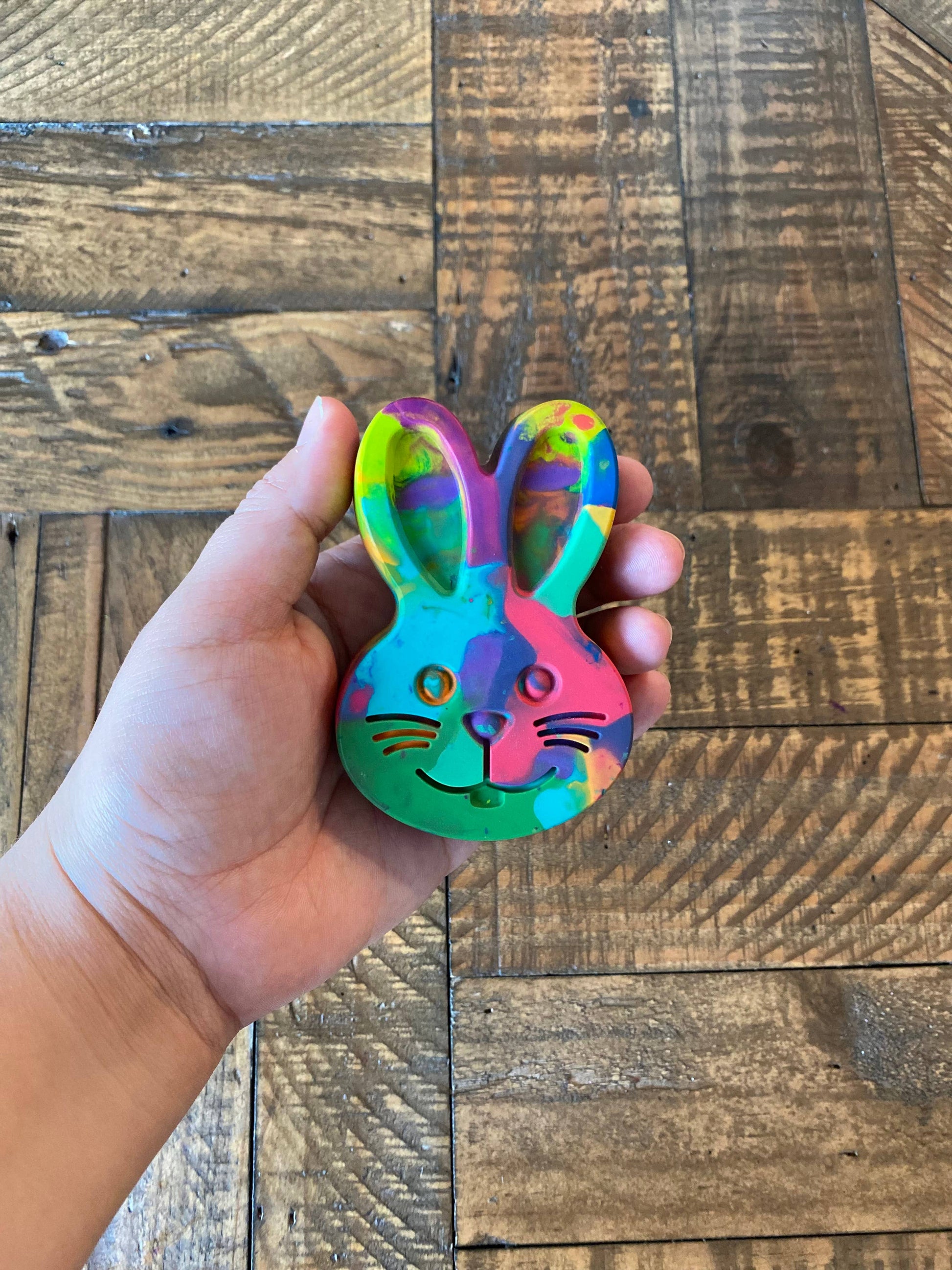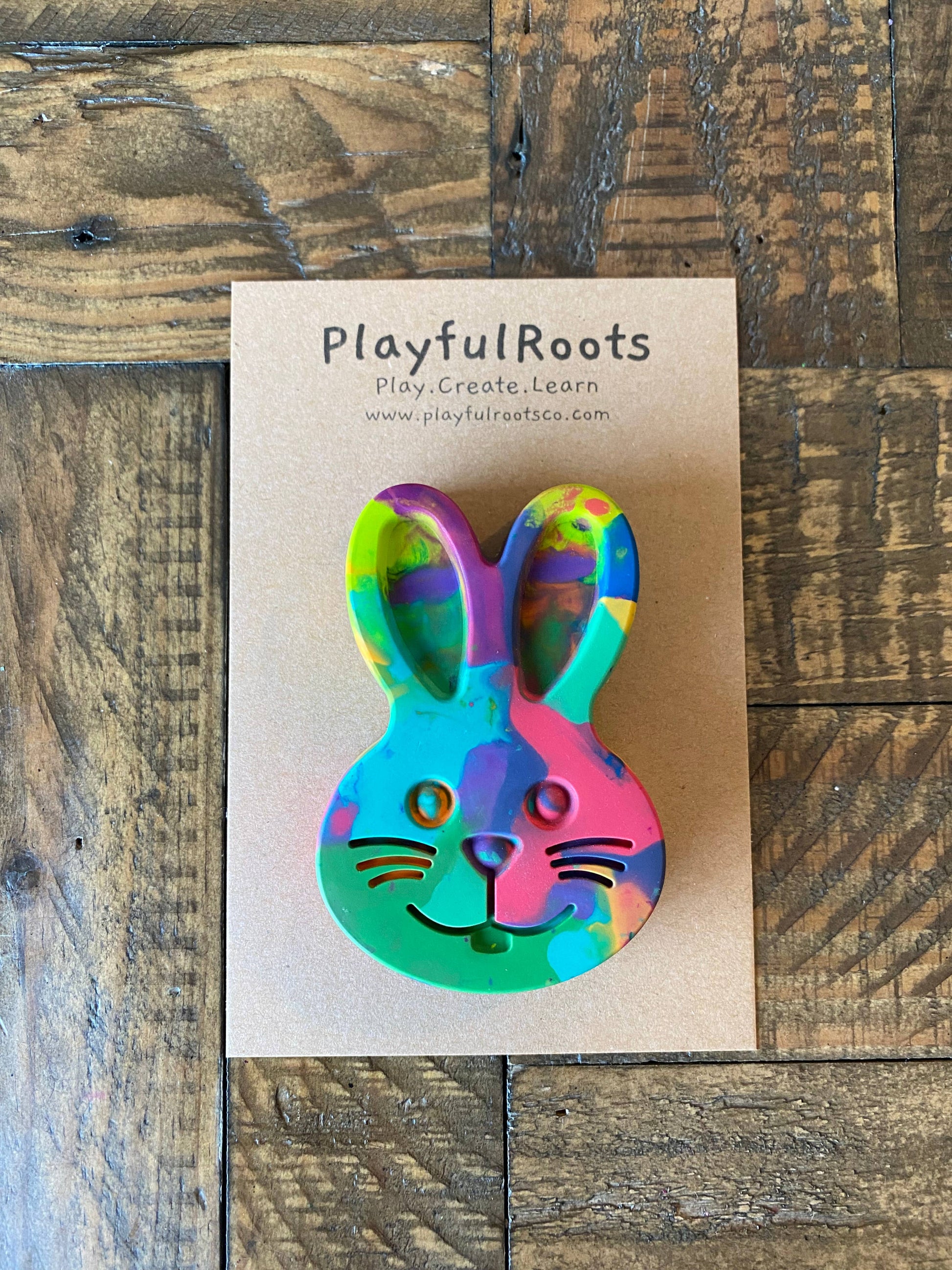 Upgrade your Easter basket with a colorful, fun, and unique bunny gift that will surely be used over and over again! The large Easter bunny crayon is about 2.5" x 3.5" and perfect for little hands to hold and scribble with.