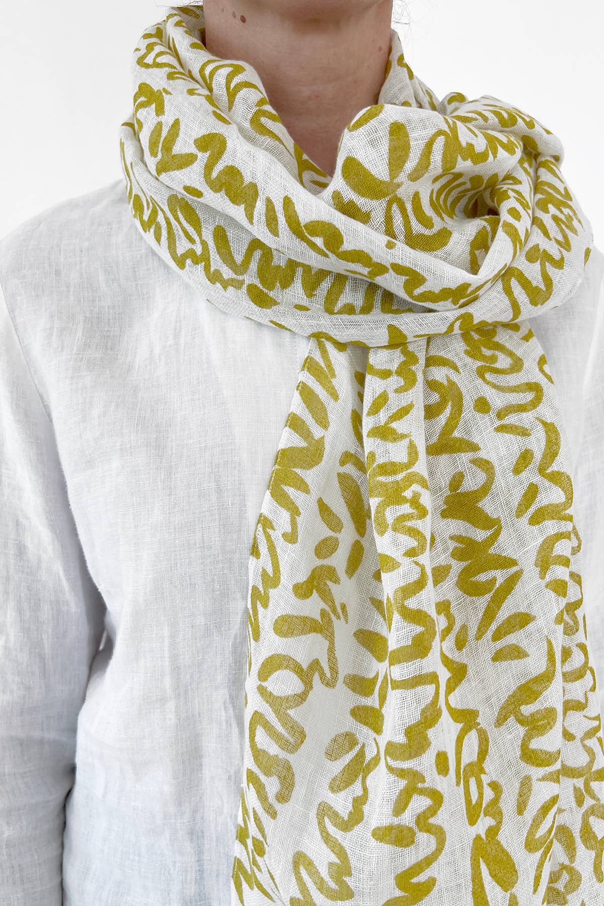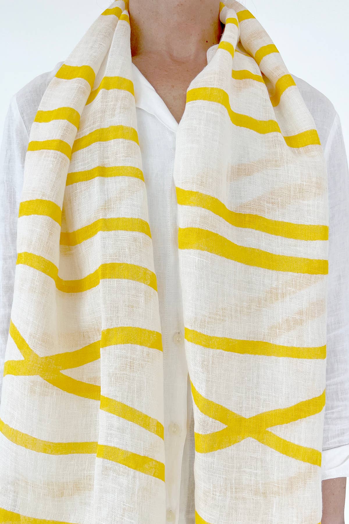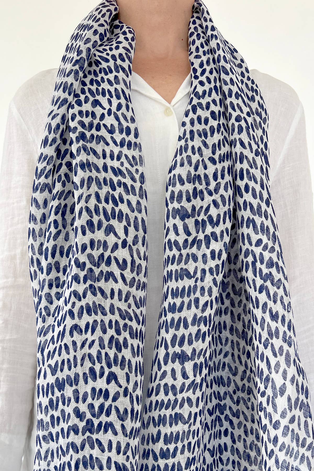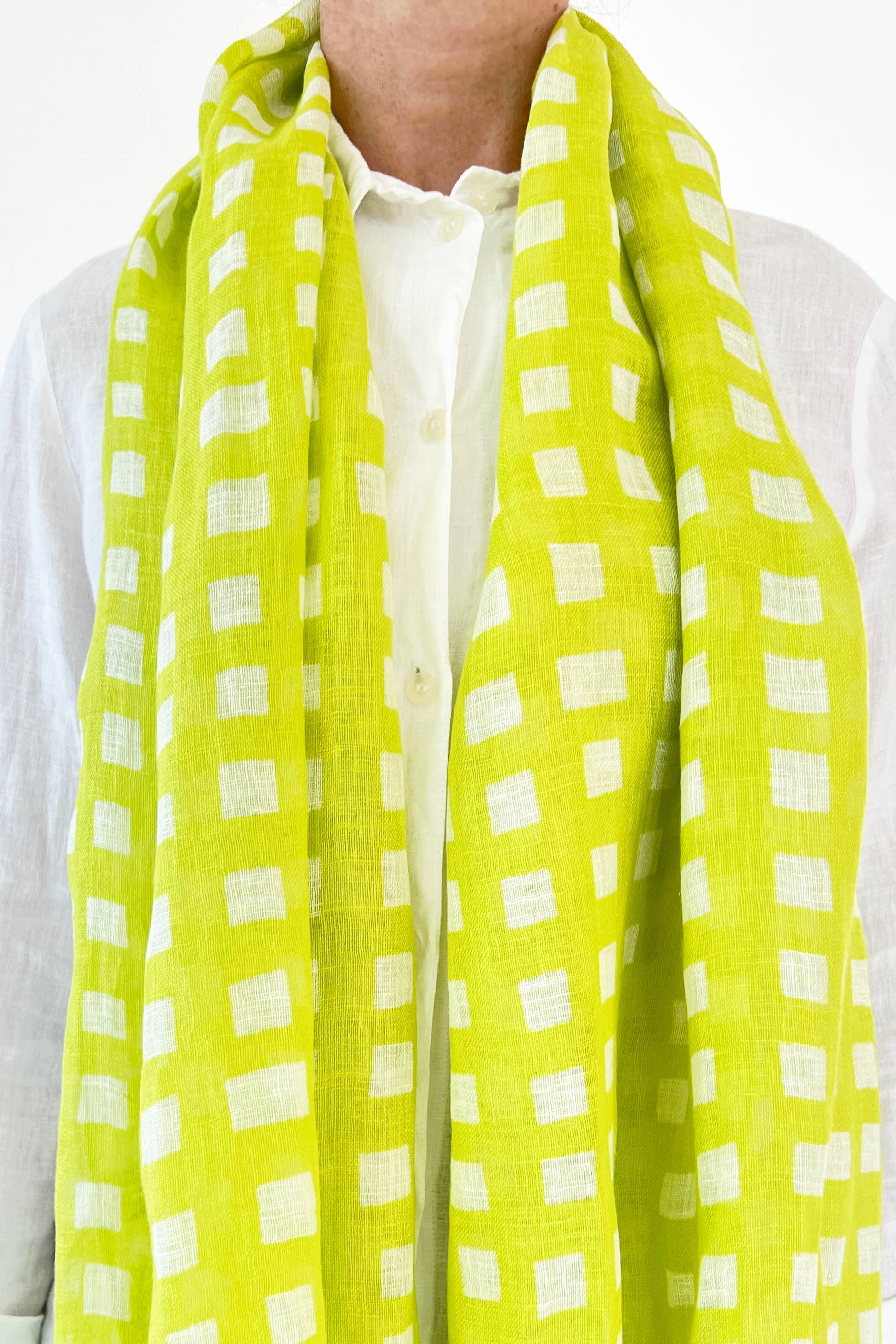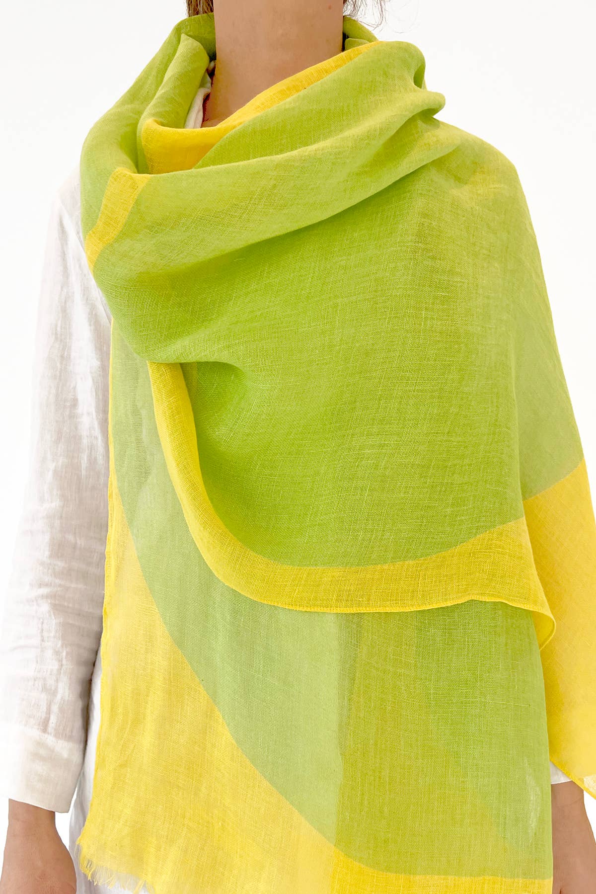 These 100% soft, linen scarves measure 28 by 70 inches and add a modern design element to any outfit.