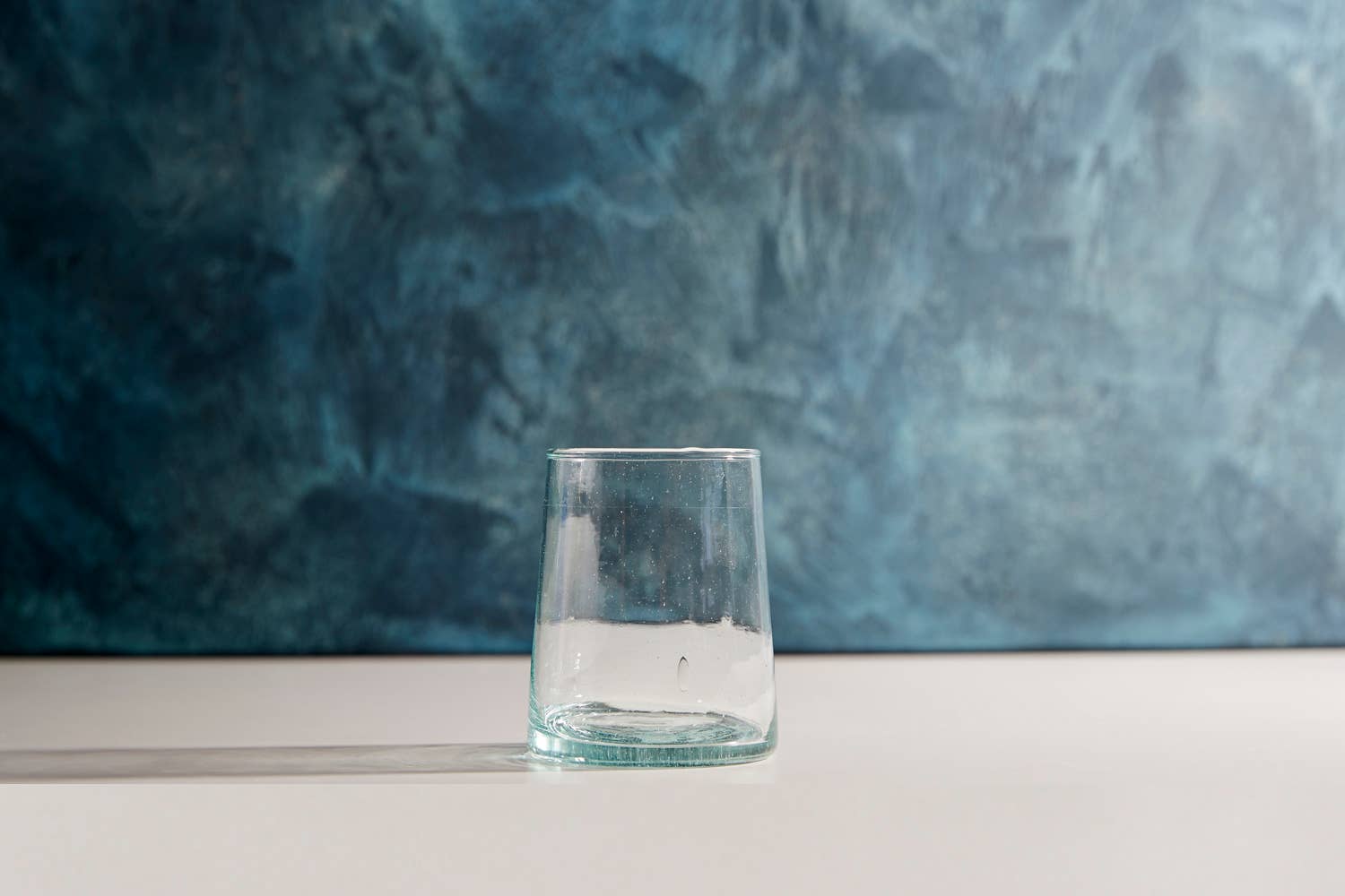 Our Moroccan glassware sets come in four distinct shades of transparent glass (Clear, Amber, Blue & Green). The handblown construction is evident in the bubbles suspended in the glass itself, and the organic forms that the vessels take.