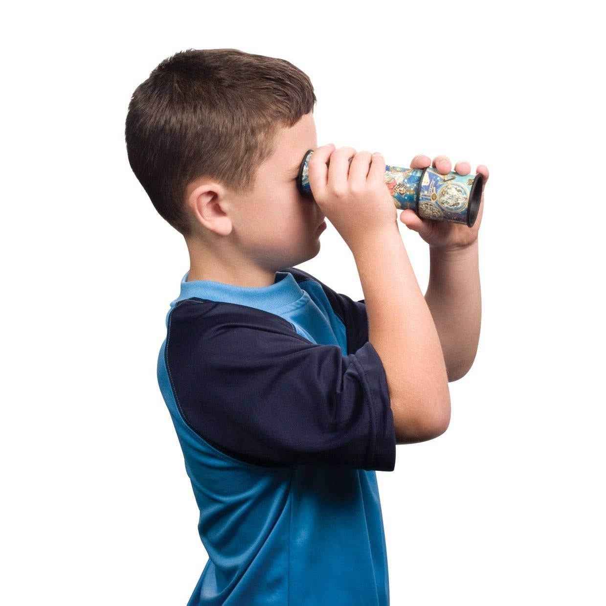 Available in 2 styles with exquisite details, this beautiful kaleidoscope from Toysmith looks like a telescope and a secret guide to the world and stars in one. Available in either Maps or Astrology styles. The Old-World Astrology kaleidoscope features a blue-colored base with old astrological images, including some early astronomers and the 12 zodiac signs. The Old World Maps kaleidoscope has a soft brown base and includes illustrated segments of some early exploration-age maps all around the exterior.