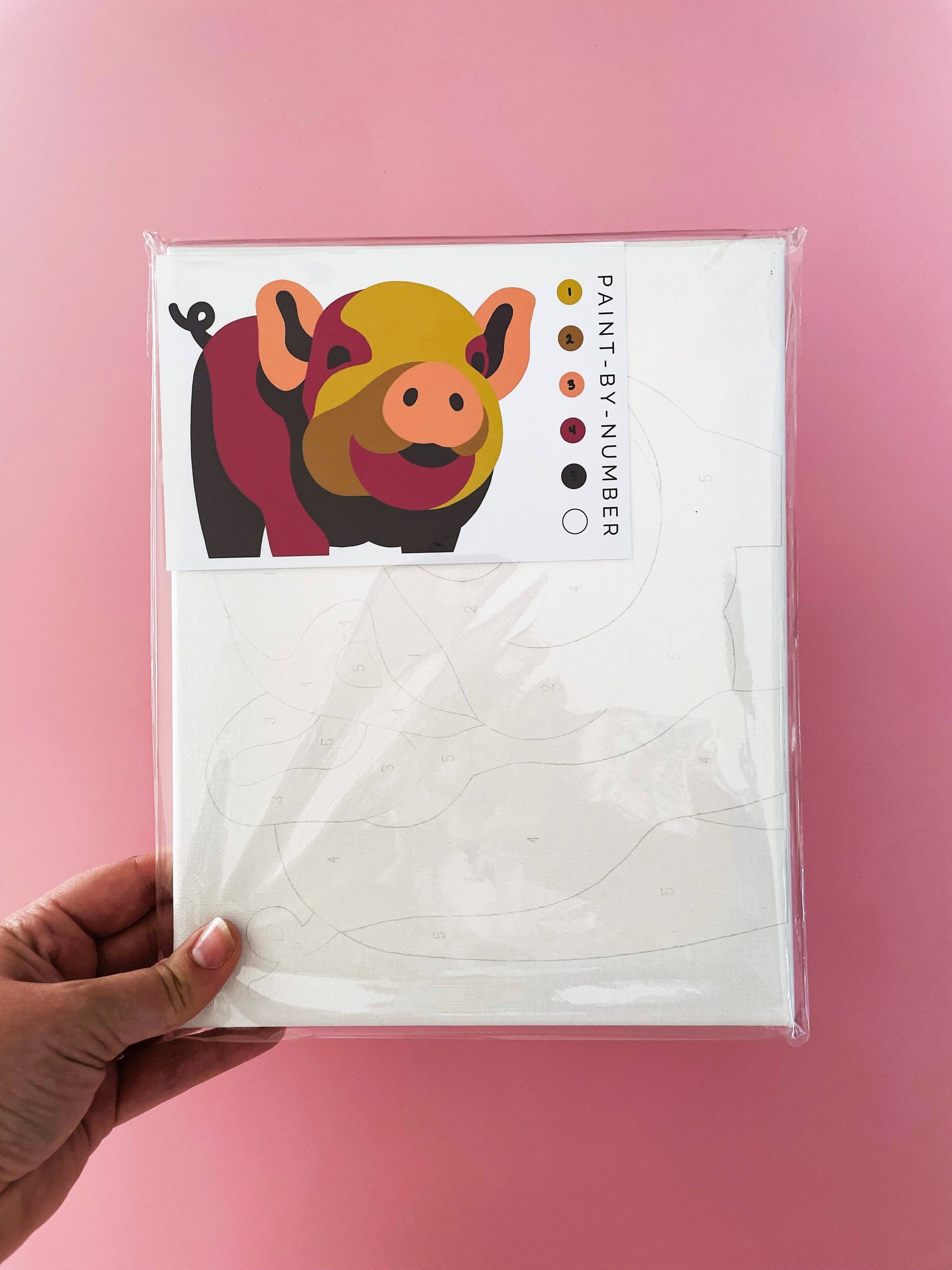 Each paint-by-number kit includes a laser-engraved 8x10 stretched canvas, numbered paint pots filled with acrylic paint, two brushes (fine tip & wide), and a reference photo.