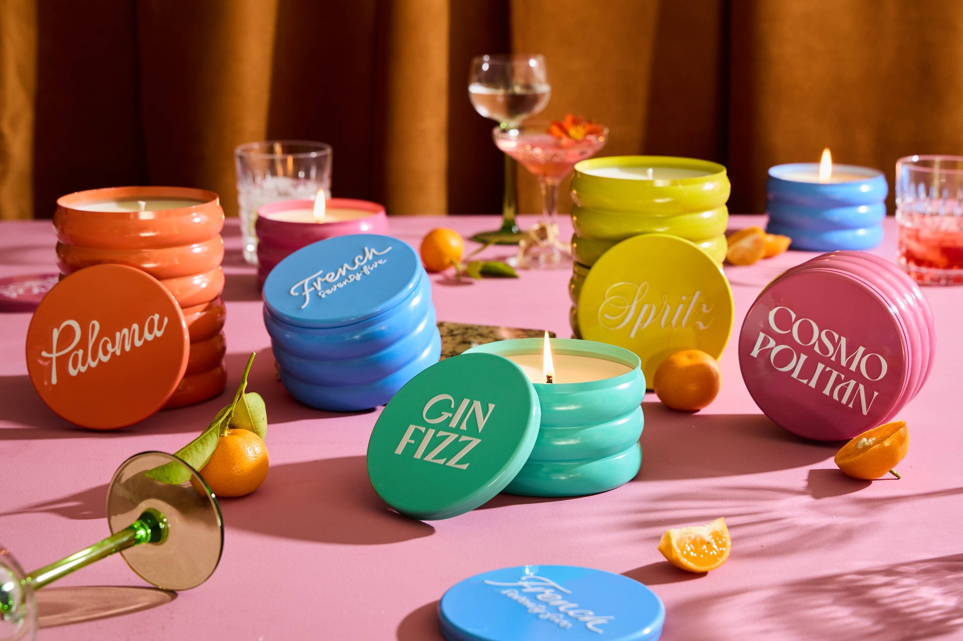 Chic and captivating. Boldly bewitching. Inspired by the pulsating energy of New York City's nightlife and the iconic presence of the 90's cocktail scene, this fragrance encapsulates the essence of the Cosmopolitan with notes of tropical hibiscus, tangy cranberry, and zesty blood orange. Encased in a vibrant, cranberry-pink colored tin, the candle exudes sophistication with a playful twist.