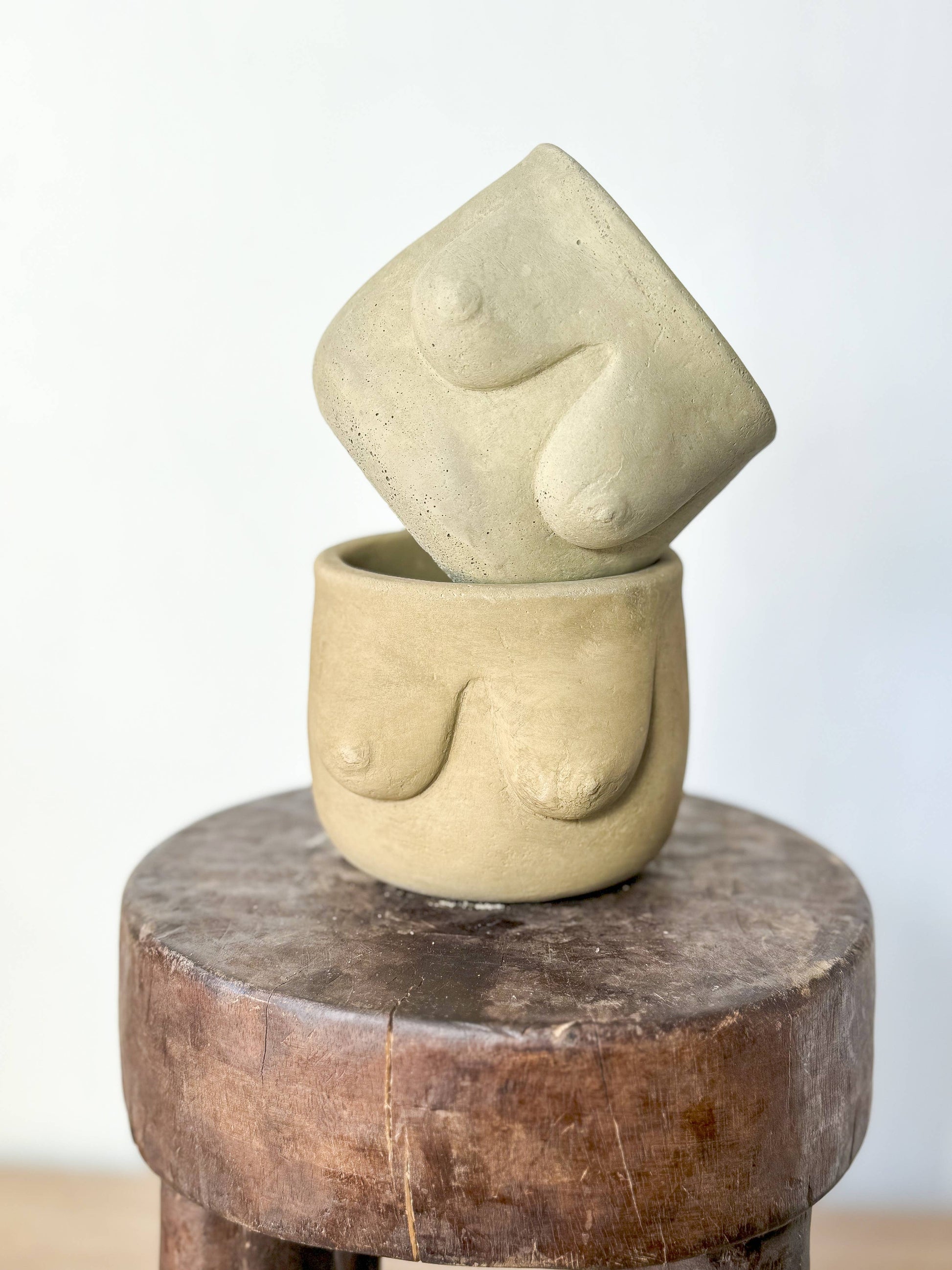 The Sein Planter is the perfect addition to any home. This unique vessel is crafted from high-quality cement, giving it a timeless, luxurious look. The inviting cork footing provides secure protection and allows you to place it wherever you desire. Transform your home with this delightful statement piece to create a more playful and creative atmosphere. *No Drainage Hole* *Each piece's color may vary slightly from the photos due to lighting differences. The planter is handcrafted from small-batch castings using cement and custom-blended pigments. Cement is a natural material; therefore, each piece will have its unique character, and slight natural variations (color, air bubbles, sizing) may vary. We do not recommend using the holder for soap or food.
