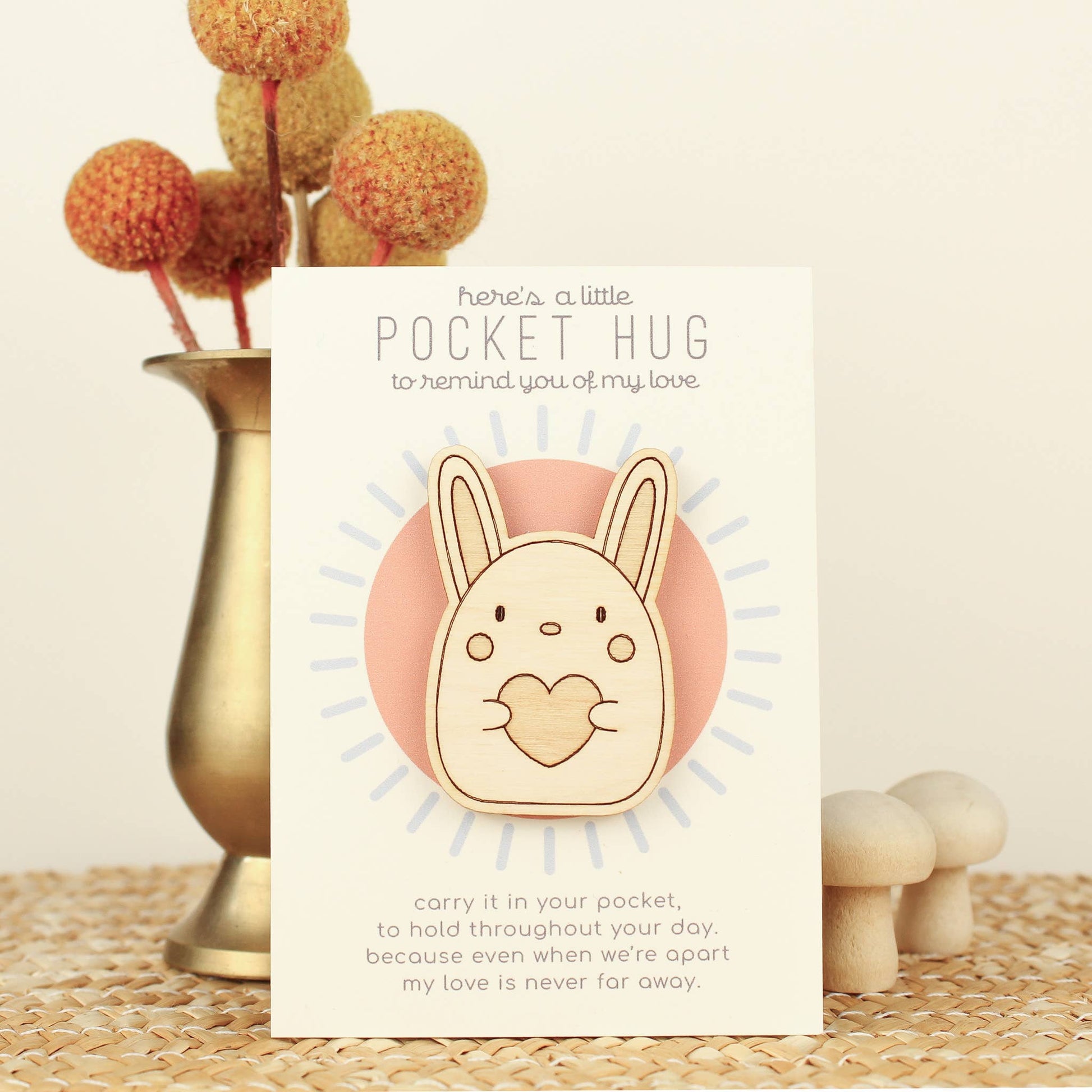 Wooden Pocket Hug, Rabbit. Thinking of You Gift